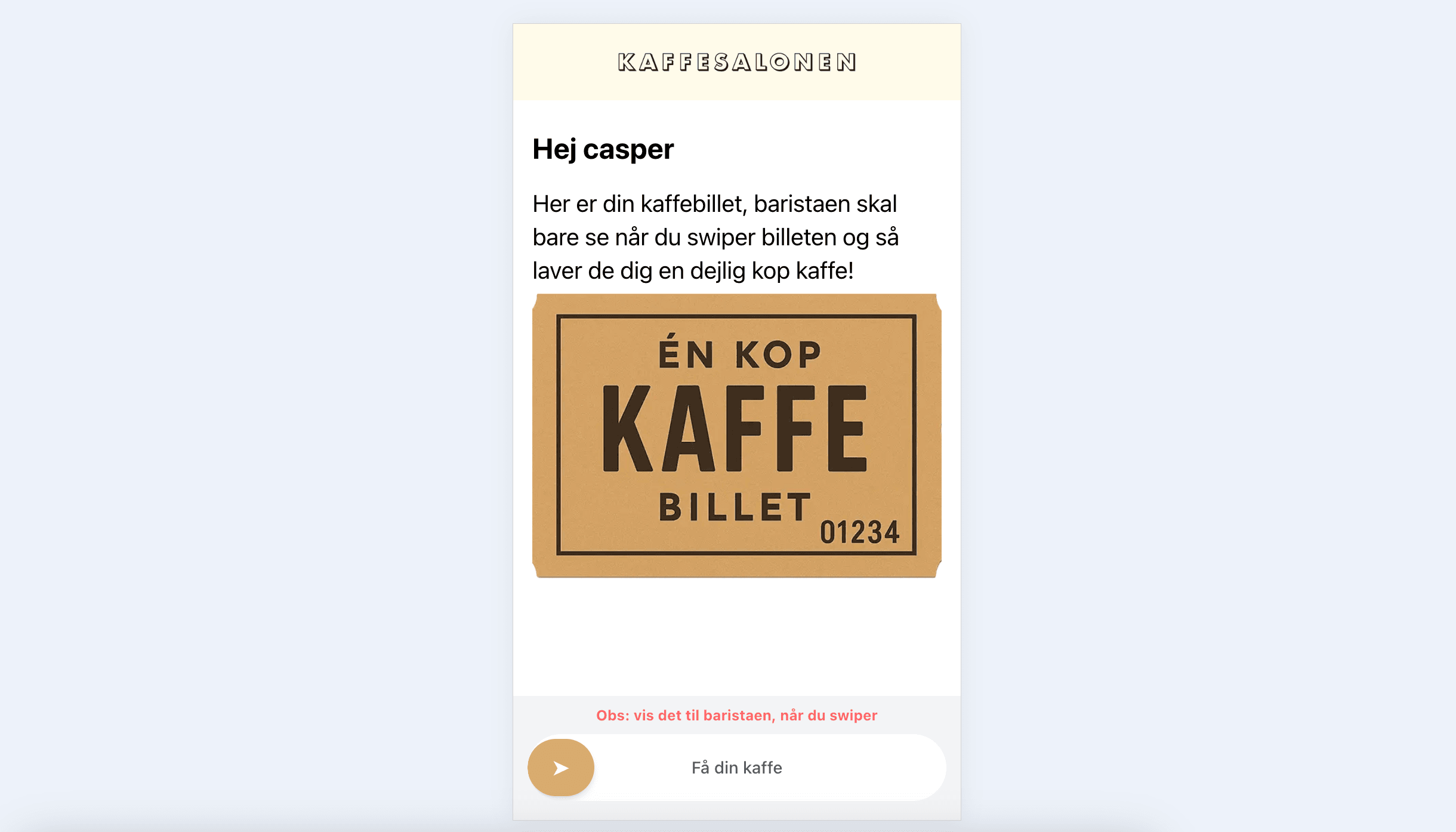 Jeg har udviklet en webapp med Next.js, React, Tailwind CSS og Strapi, hvor brugere kan signe op for at modtage en gratis kop kaffe. Ved signup oprettes brugeren i Strapi, som samtidig genererer og sender et unikt ID til Klaviyo. Klaviyo bruger dette ID til at sende en personlig e-mail med et unikt link, som brugeren kan bruge for at fĂĄ sin kaffe.